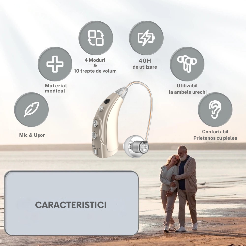 Set 2x Aparat Auditiv VHP-1714 Premium, Autonomie Acumulator 40h, 4 Olive, Reduce Zgomotul de Fundal, Hipoacuzie Medie-Severa, Chip Digital, 4 Moduri de Functionare, Volum ajustabil, 117dB